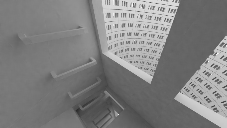 There is a backup access ladder in each space. This ladder also serves as a utility column for water and sewage, if the tenants can afford such luxuries.