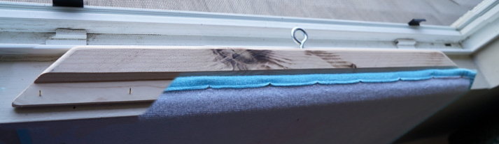 Specify "-OB" for this orientation, which hides the top edge behind the hanger. The tiny nails which stud the back surface grasp the cloth without any obstructive knobs or inconvenient threads of normal quilt hangers (specify "-SB" in the part number).